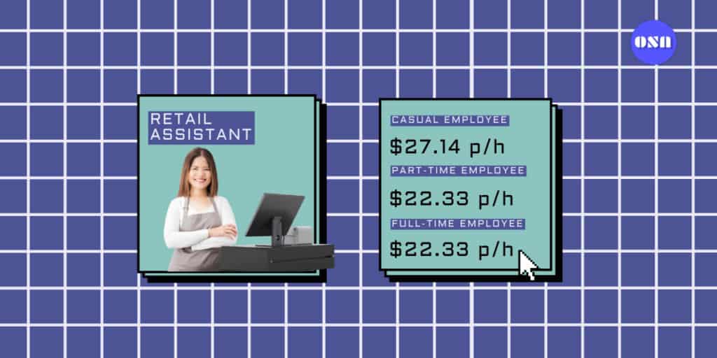 Under the General Retail Industry Award (MA000004), Level 1 retail assistants are paid $25.65 per hour (for full-time and part-time employees) $32.06 per hour (for casuals).