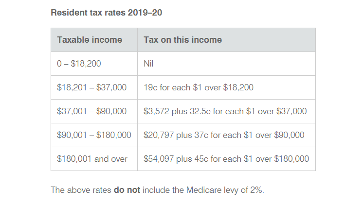 Check the tax table below to see how much tax residents have to pay in Australia based on their income.
